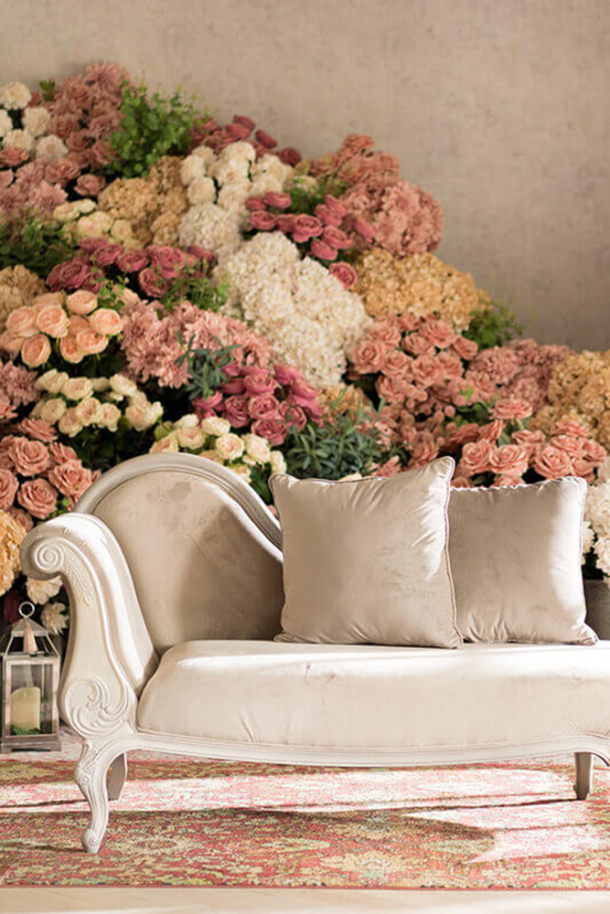 海外を思わせる欧風邸宅のフォトスタジオ内には、溢れる草花で飾られた一画や、煌めくシャンデリア、アンティーク調のインテリアなどフォトスポットが満載。おふたりのイメージやスタイルに合うシチュエーションをお楽しみください。