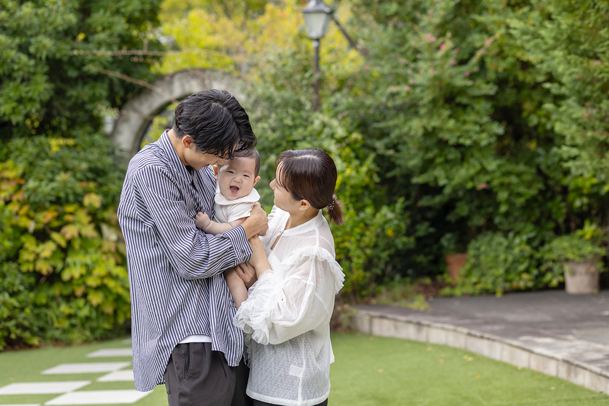 広々スタジオで、三世代ショットもゆったりおじいちゃんおばあちゃんも一緒に、家族みんなで記念の一枚を。人数が多くてもゆったり撮影できるので、多世代でのご来店も安心です。 -