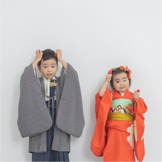 写真を彩る、豊富な衣装ラインナップ七五三や卒業式、振袖・袴など、節目にふさわしい衣装を幅広くご用意。人気のアンティーク衣装「イロドリキモノ」をはじめ、お子さまから親御さままで、ご家族みなさまで統一感のある撮影が叶います。