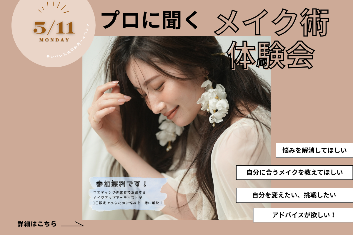 【5/11(月)開催】プロに聞く「メイク術体験会」を開催します!