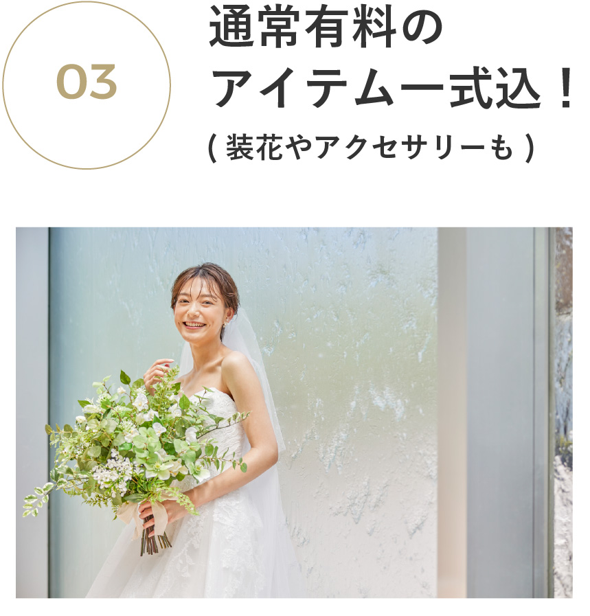 アクセサリーやブーケも自由に選べる!