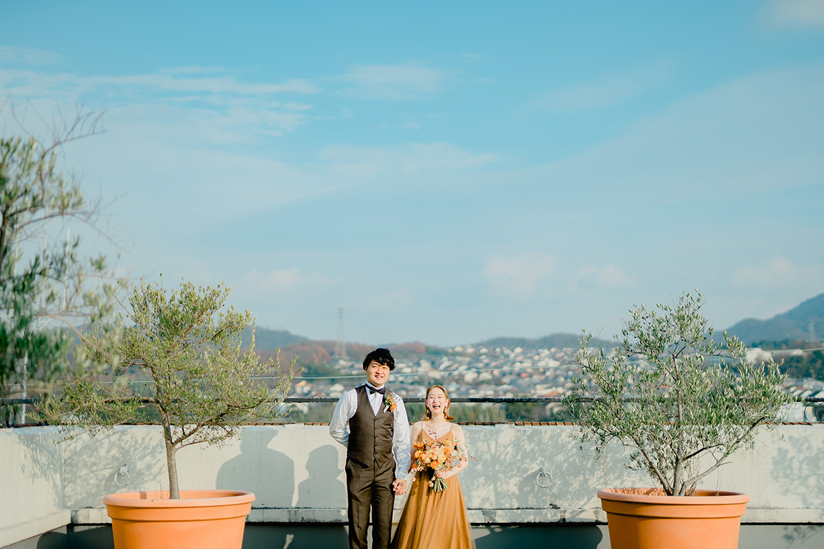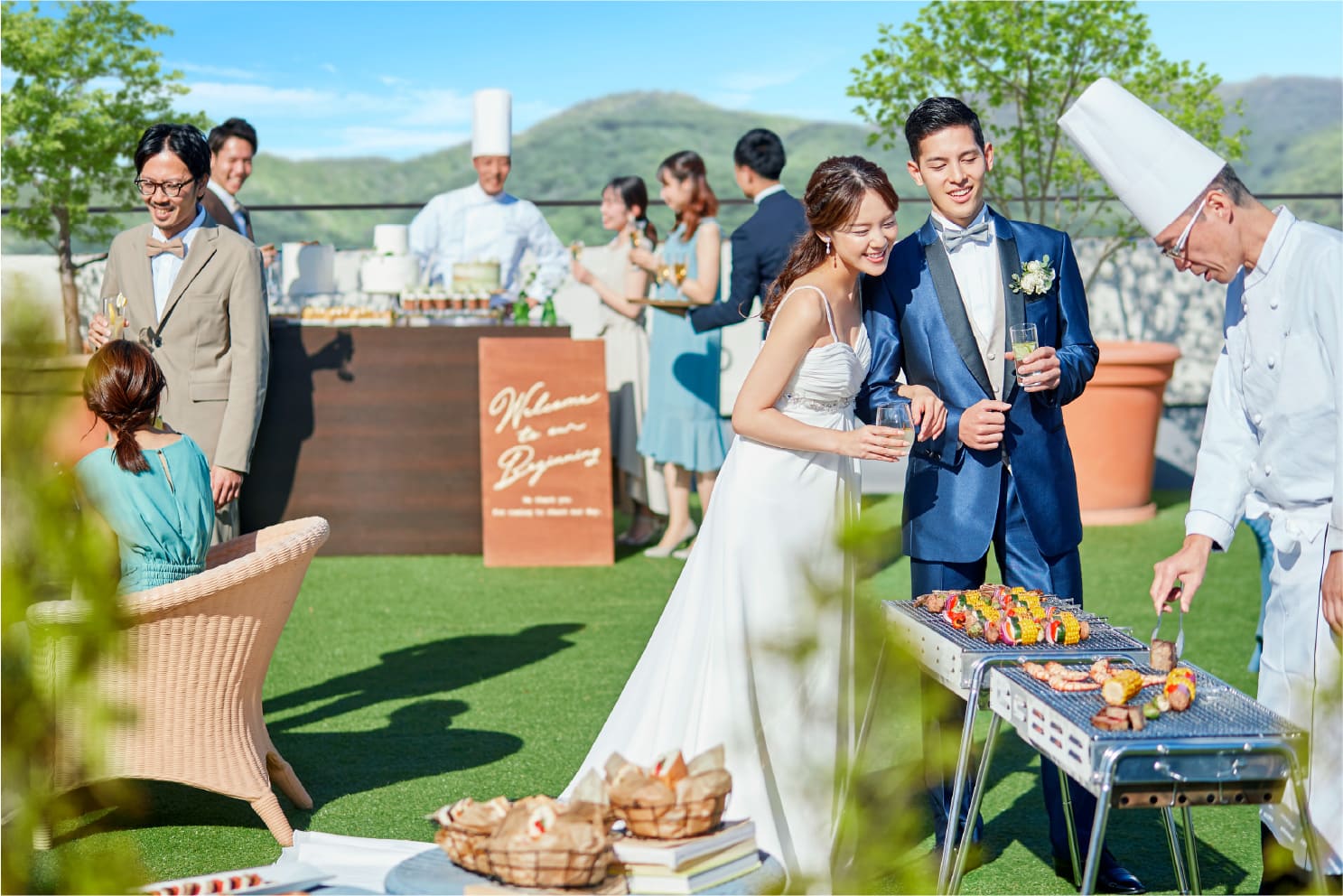 ガーデンサンパレスのガーデンで、ゲストと近い距離で楽しむナチュラルウェディング。六甲の山々を望む開放的な空間で、多彩な演出が叶います。