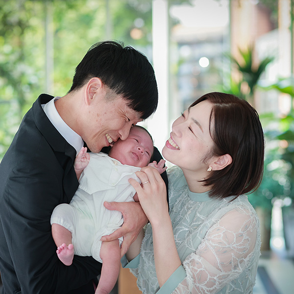 ご家族そろって残すはじめての記念写真赤ちゃんだけでなく、パパ・ママ・祖父母と一緒に家族のはじまりを感じる記念写真を撮影できます。