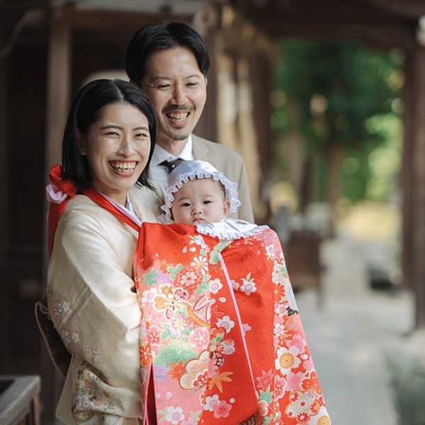 赤ちゃん用祝い着の衣装レンタルもご用意お宮参りに欠かせない祝い着(産着)のレンタルもご用意。特別な一日を、晴れやかな装いで写真に残せます。