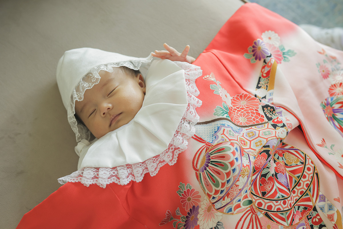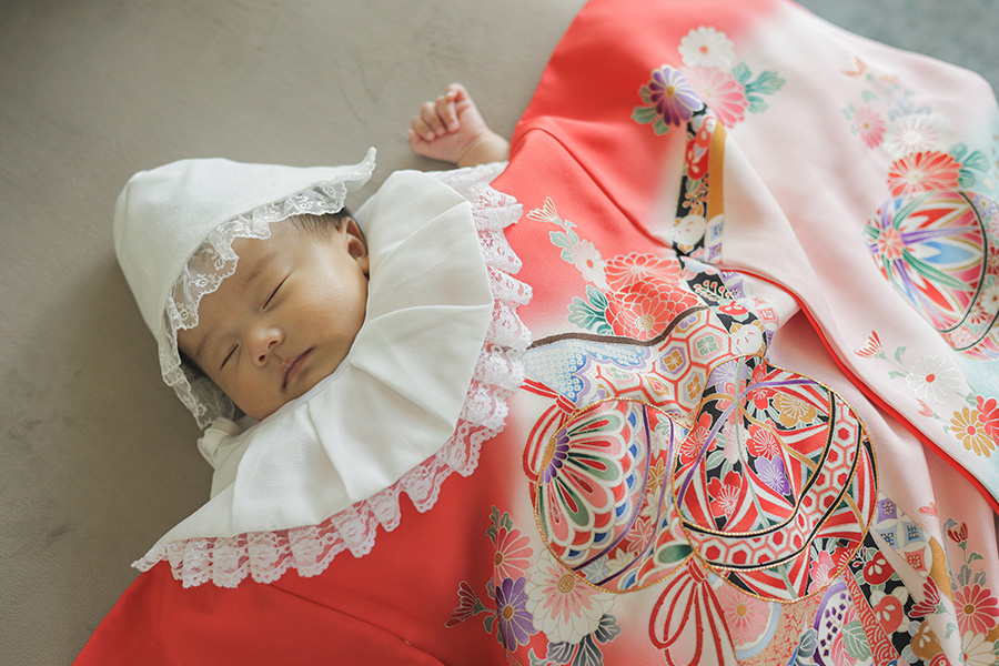 赤ちゃん用祝い着の衣装レンタルもご用意お宮参りに欠かせない祝い着(産着)のレンタルもご用意。特別な一日を、晴れやかな装いで写真に残せます。