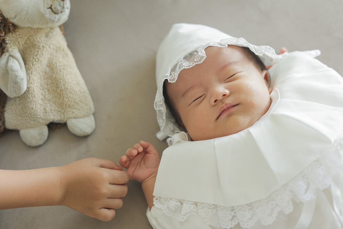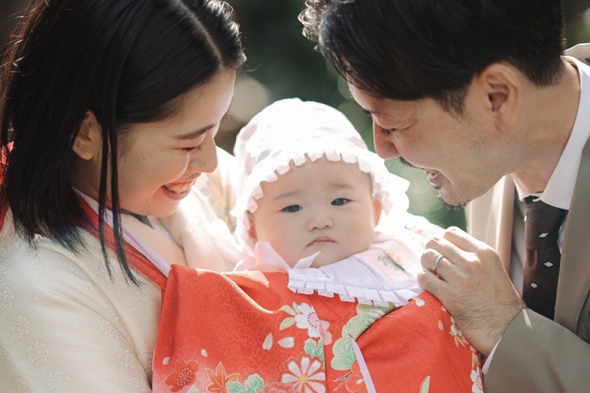 ご家族そろって残すはじめての記念写真赤ちゃんだけでなく、パパ・ママ・祖父母と一緒に家族のはじまりを感じる記念写真を撮影できます。