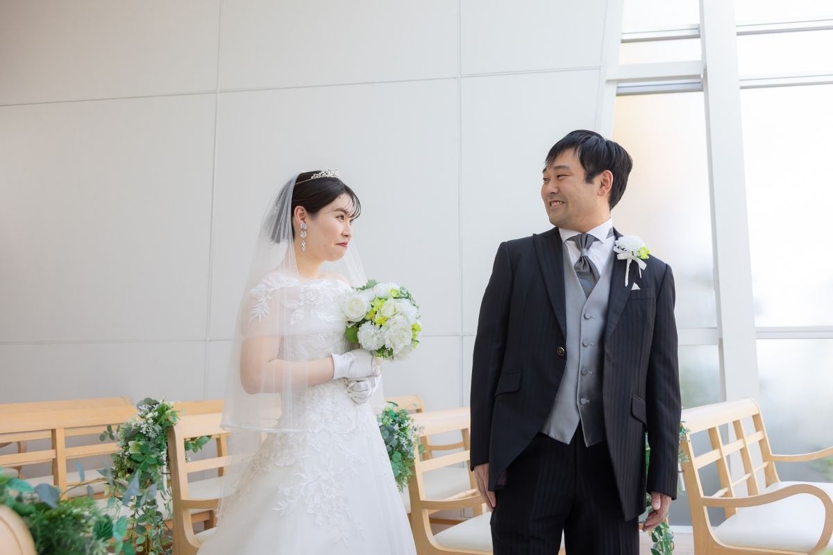 水が流れるガラスウォールが幻想的な独立型チャペルで行う結婚式。